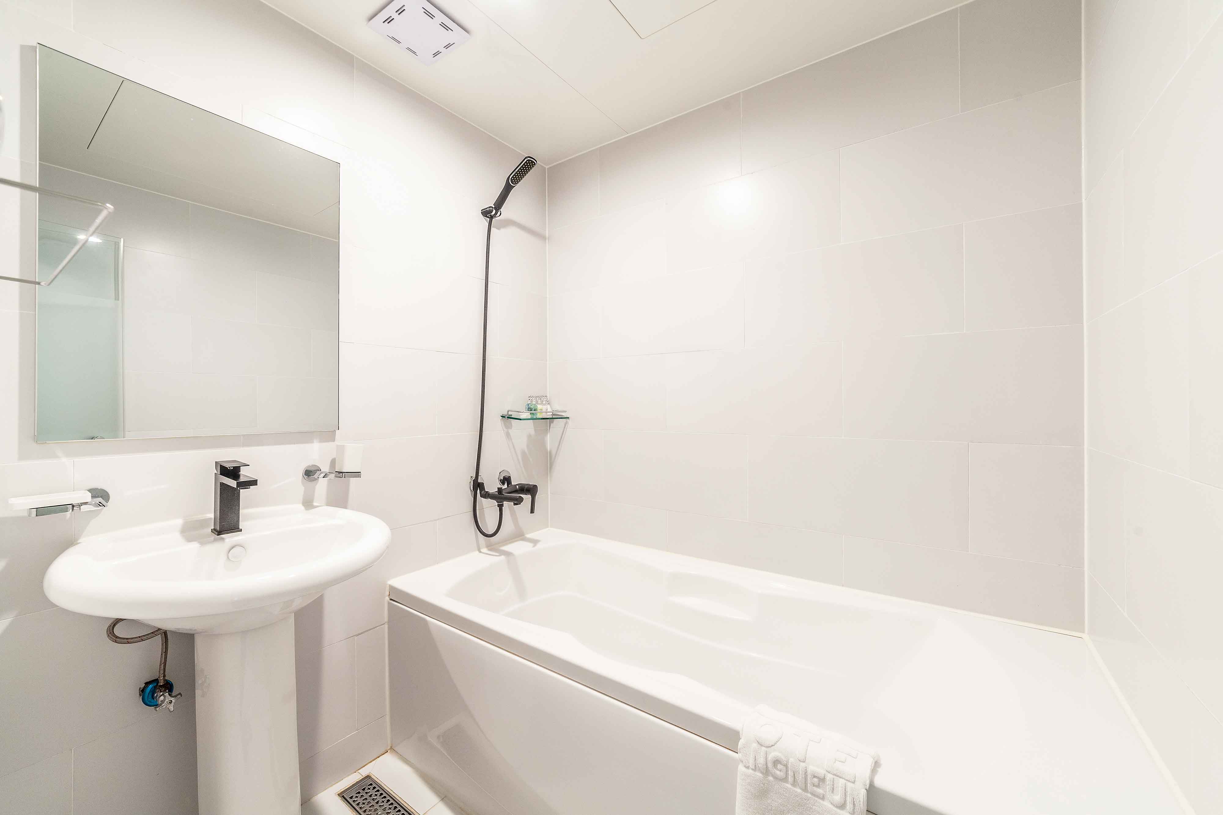 욕실 비품 치약셋트(투숙인원기준), 바디로션, 헤어컨디셔너, 샴푸, 바디워시, 바디스폰지(투숙인원기준), 비누, 레이디셋트, 머리빗, 수건(페이스/바디), 바디타월, 면도기